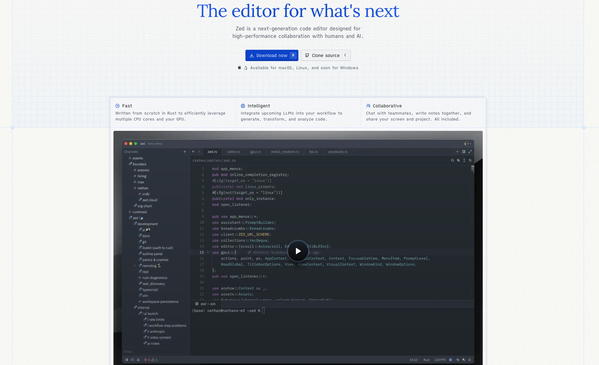 나는 1년 동안 실사용 하는 에디터인데, Rust 기반이기에 Electron 기반의 VSCode보다 확실히 빠르다. 설치한 배경은 당시 Rust뽕에 맞아서 Rust가 들어간 프로그램들 주구장창 찾다가 발견하게 되었다.