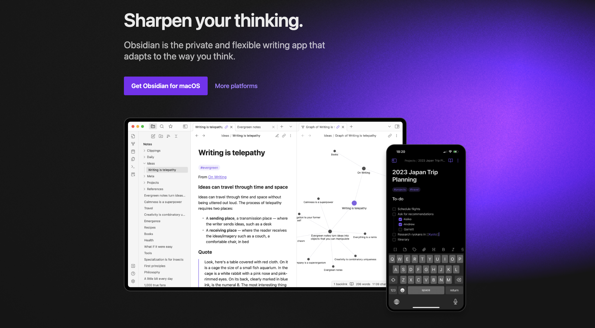 그리고 수업 내용이나 개인적으로 무언가를 필기한 뒤 markdown 형식으로 저장하고 싶을 때가 있는데, 이보다 좋은 마크다운 에디터가 또 있을까 싶다. 실제로 나는 Obsidian을 통해 독서노트나 수업 내용 필기를 하고 있다.