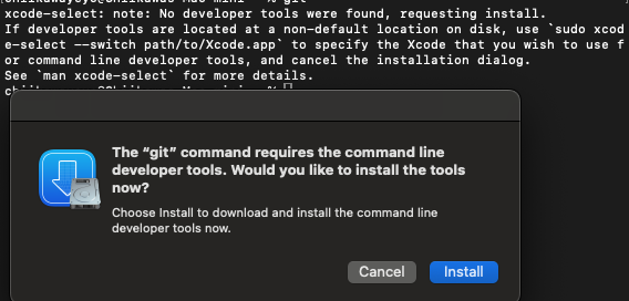 소용 없다. 맥에서 개발하려면 이거 깔아야 한다. 당장 Git 명령어 치면 이거 설치하라고 한다.